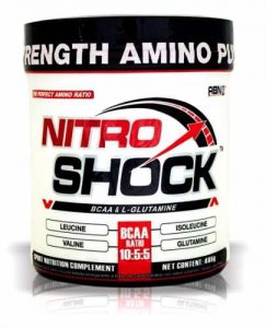 NITRO SHOCK es la más novedosa y poderosa fórmula de Aminoácidos de Cadena Ramificada y Glutamina jamás desarrollada, única en el mundo con la proporción exacta de sus componentes (10:5:5 & 16 OPTIMAL RATIO OF BCAA & GLUTAMINA). Es una avanzada fórmula de rápida absorción que combina los aminoácidos más degradados por el músculo durante la actividad física; los BCAA que son transformados en energía durante la actividad física y la L-Glutamina que es el 60% de la masa muscular; debido a esto es estrictamente necesario la suplementación con estos elementos durante y post entrenamiento, para lograr el objetivo planteado y maximizar los resultados buscados por lo atletas.