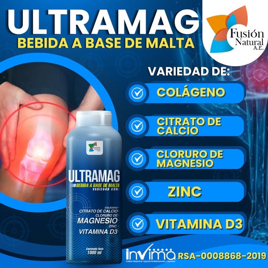 Ultramag es una bebida innovadora que combina los beneficios de la malta con nutrientes esenciales para cuidar tus huesos, articulaciones y músculos. Su fórmula líquida es ideal para quienes desean mejorar su bienestar físico de manera natural y efectiva.